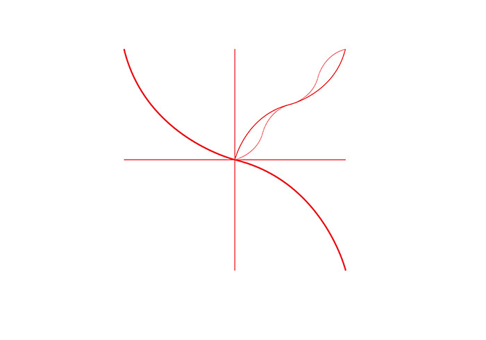 Why this specific curve? Given a square field, if we reject the straight line and retain symmetry, there’s essentially only one curved line that connects opposite points, the parabolic-type curve. That said, the specific form of the module isn’t the point. This isn’t about formal perfection or the creation of a fully resolved abstract system. The real focus is the tension and interplay between two coordinate systems: the constructed (immanent) and the actual (lived).